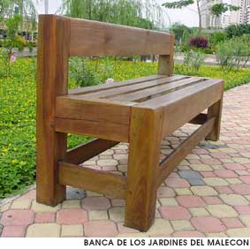 La banca es de madera de moral. Su diseño es masiso, lo que impide que se mueva. |