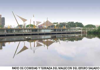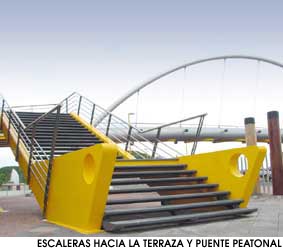 Escaleras de acceso al puente peatonal y a la terraza del patio de comidas.