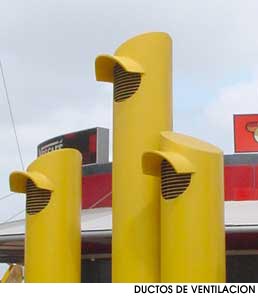 Los ductos de ventilación del patio de comidas son de acero pintado.
