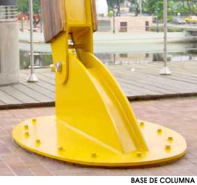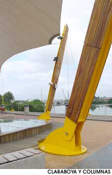 La columna es de acero forrado con madera, cada una de ellas tiene diferente altura y sección.